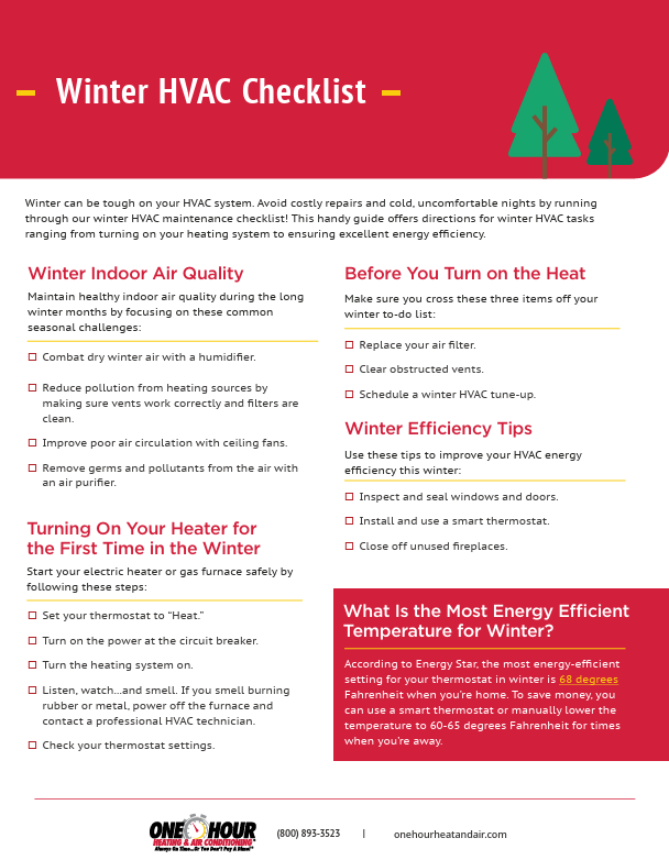 Want to learn more about ways to keep your system running smooth and ways to save money on your energy bill? Download our winter maintenance checklist
